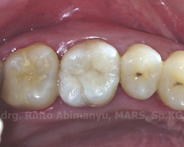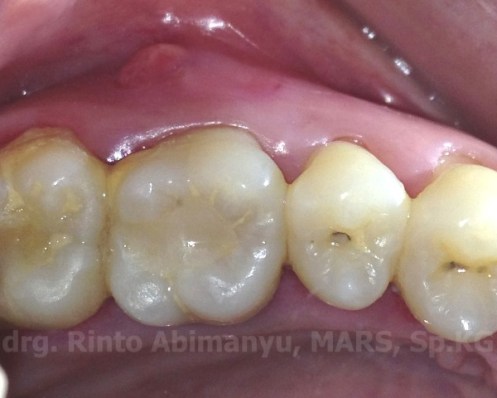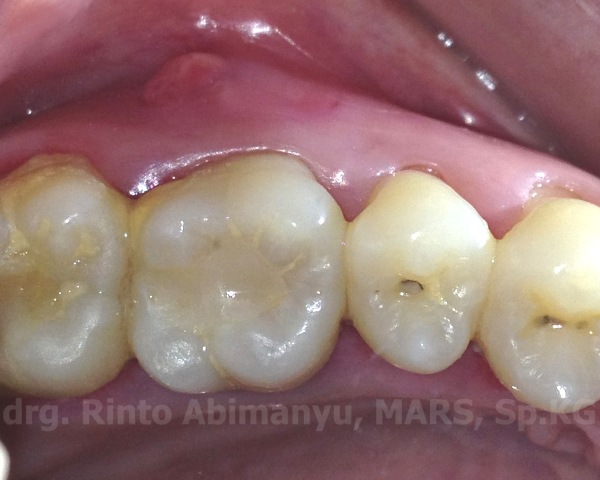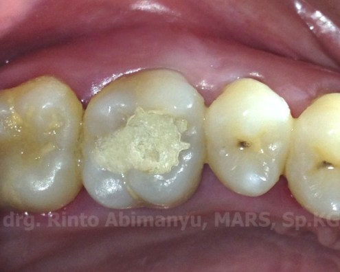 Pada saat diperiksa kondisi klinis terlihat gigi 26 masih ada tambalan komposit dan gingiva daerah bukal ada fistula.. Perkusi positif, palpasi positif dan tidak ada kegoyangan gigi.