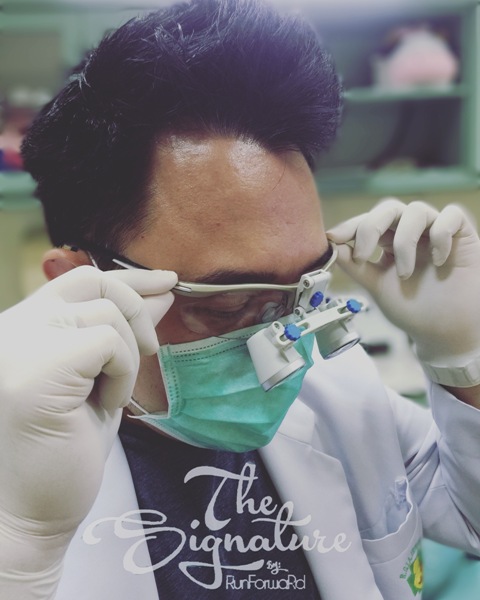 Oo iya… perawatan saluran akar dan restorasi akhir yang terlihat natural pada perawatan ini tidak mungkin terlaksana tanpa alat bantu visual yang memadai… Saya menggunakan lup “The Signature by Run ForwaRd” salah satu seri terbaik dari 4oureyes loupe, dengan perbesaran 3,5x, sehingga daerah kerja saya terlihat lebih besar, jernih dan terang….