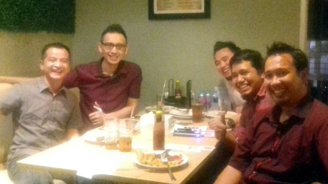 Buka puasa bareng 3M Indonesia… Rencana ada 10 orang tetapi hanya 6 yang datang… Ki-Ka : drg.Furqan, Mas Ganda (3M), drg. Mirza, Mas Aris (Cobra), drg. Rio dan saya…