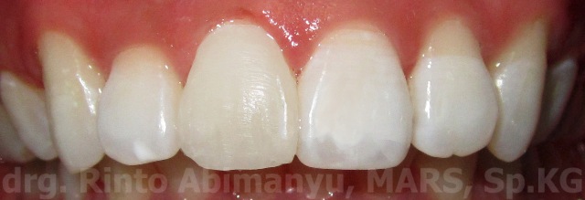 Apa yang terjadi?? Gigi2 pasien mengalami overbleached sehingga terjadi white spot yang parah di seluruh gigi 😦