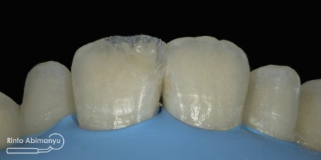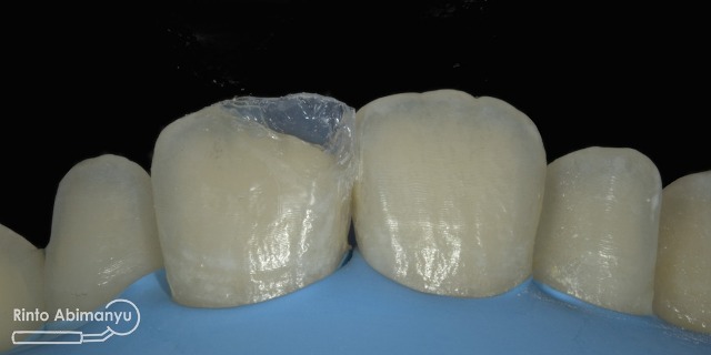 Kemudian gigi dietsa, dengan sebelumnya gigi 11 saya tutup menggunakan teflon tape (selotip kran air), lalu dilanjutkan dengan pemberian bonding…