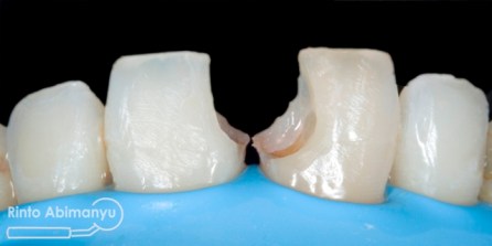 Gigi 11 dan 21 setelah selesai konturing dan pemolesan