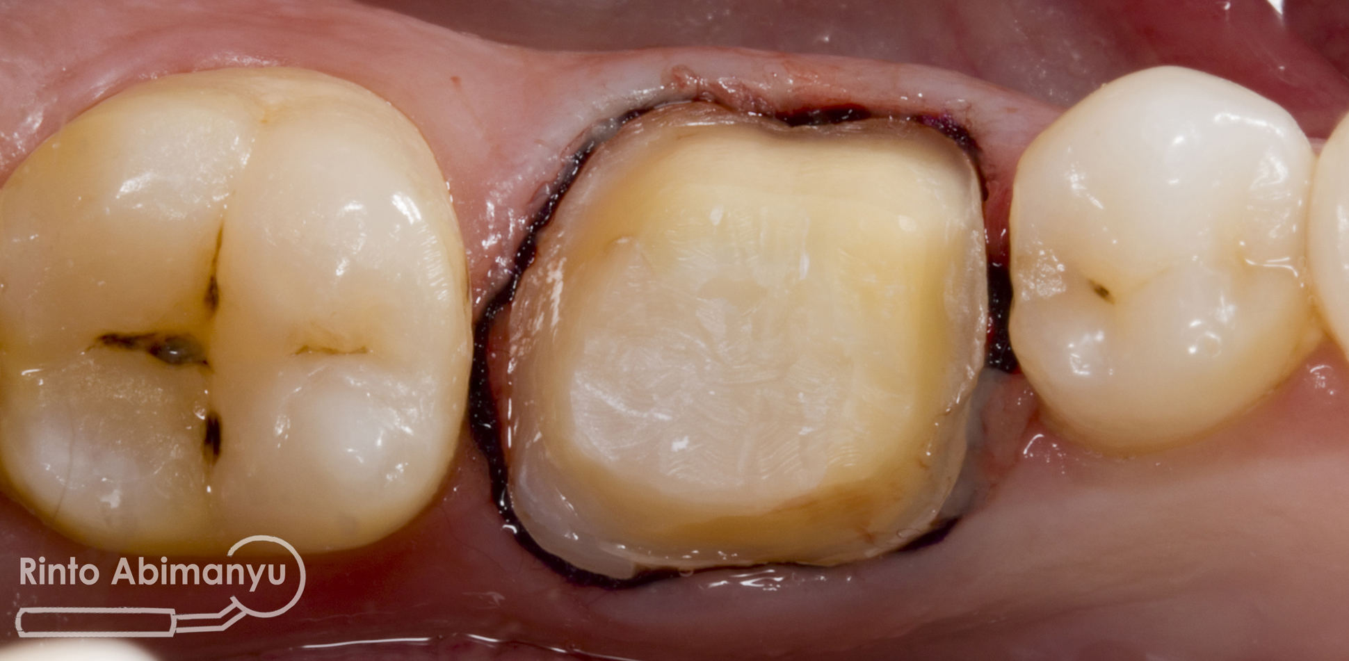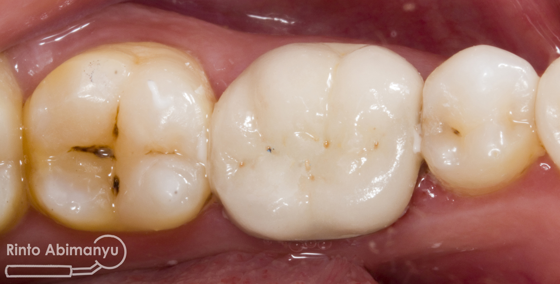 Hehehe… untuk kasus ini memang direncanakan untuk restorasi definitifnya menggunakan crown jadi pasien hari ini datang lagi untuk preparasi dan pencetakan crown…