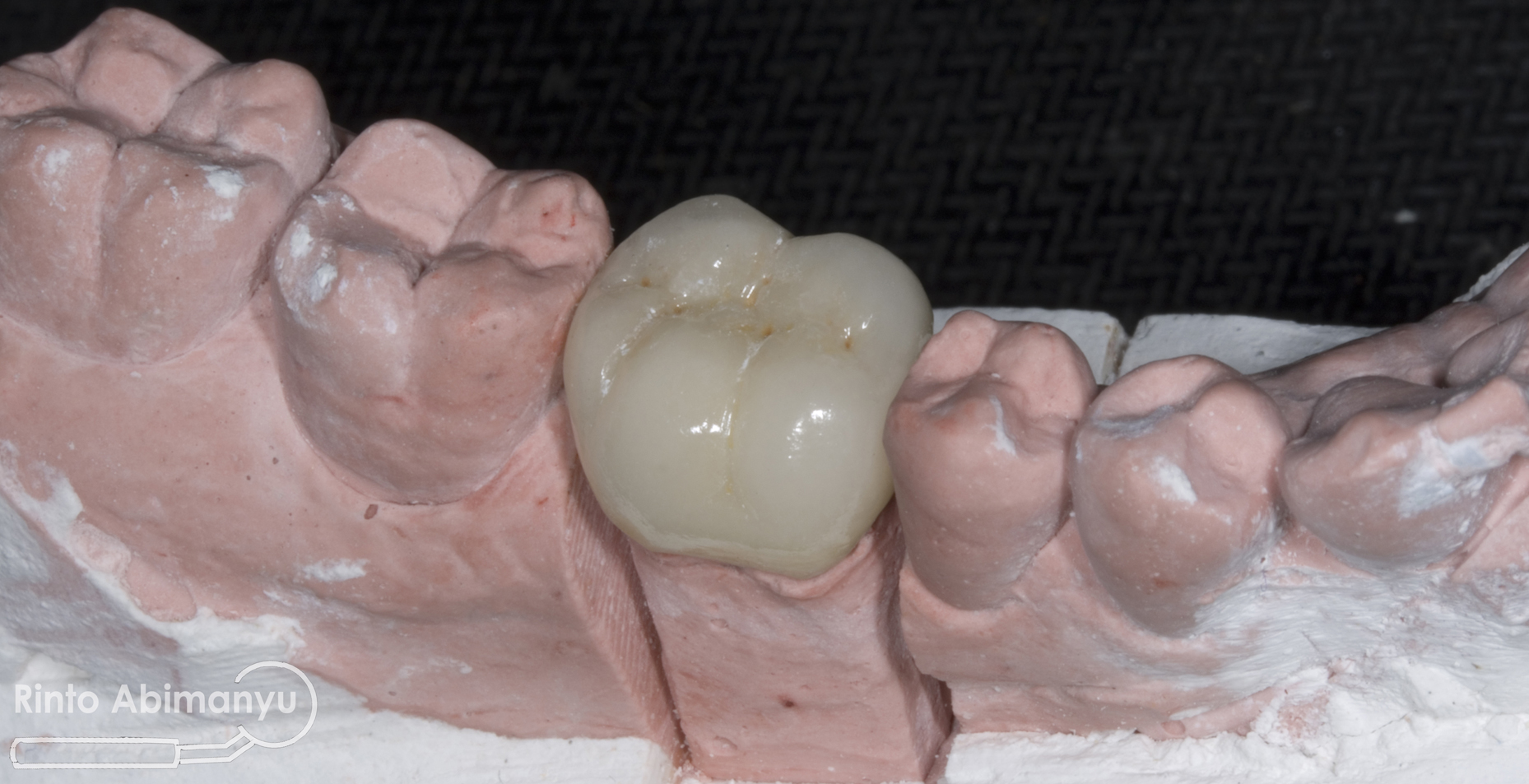 Crown yang saya buat adalah Porcelain Fused to Metal (PFM) dan begini tampilannya sesaat setelah dikirim dari lab…