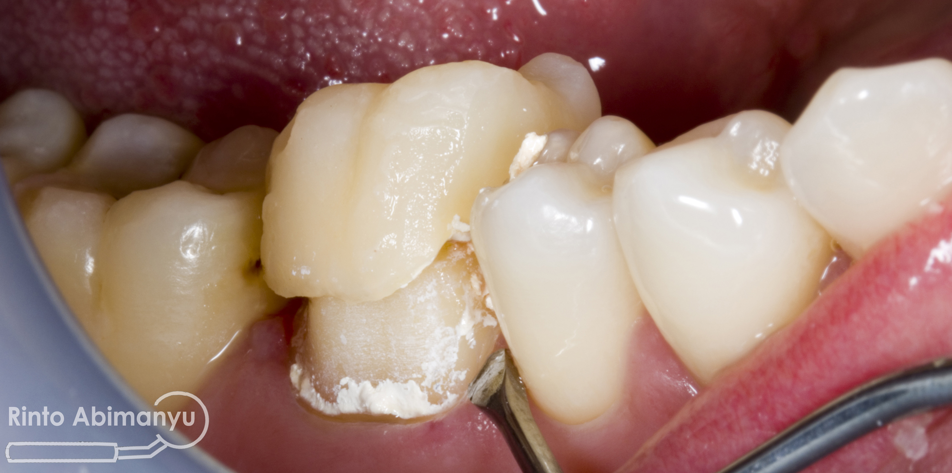 Saat pasien datang crown sementara dilepas, dan semen yang tersisa dibersihkan dengan skeler dan brush…